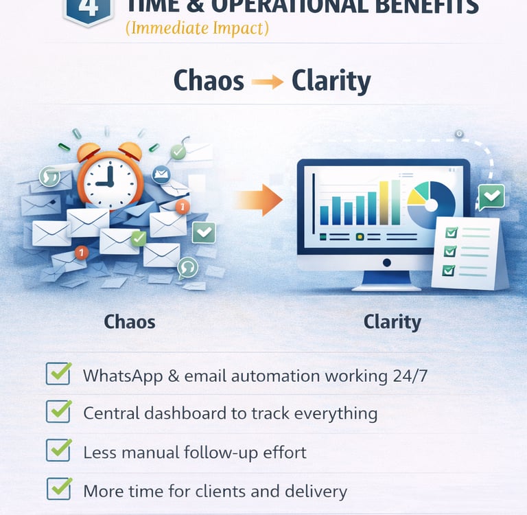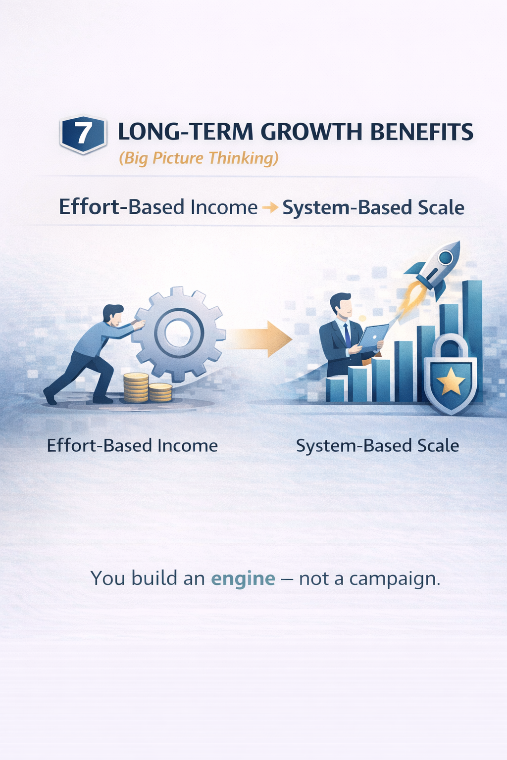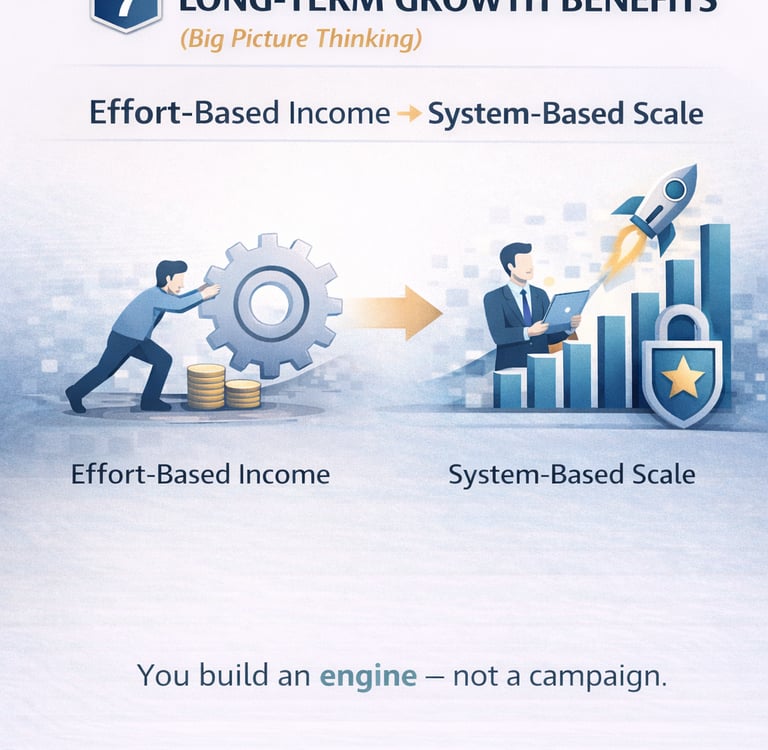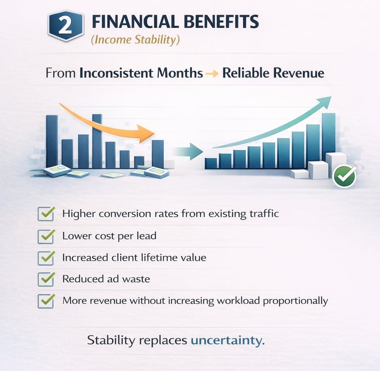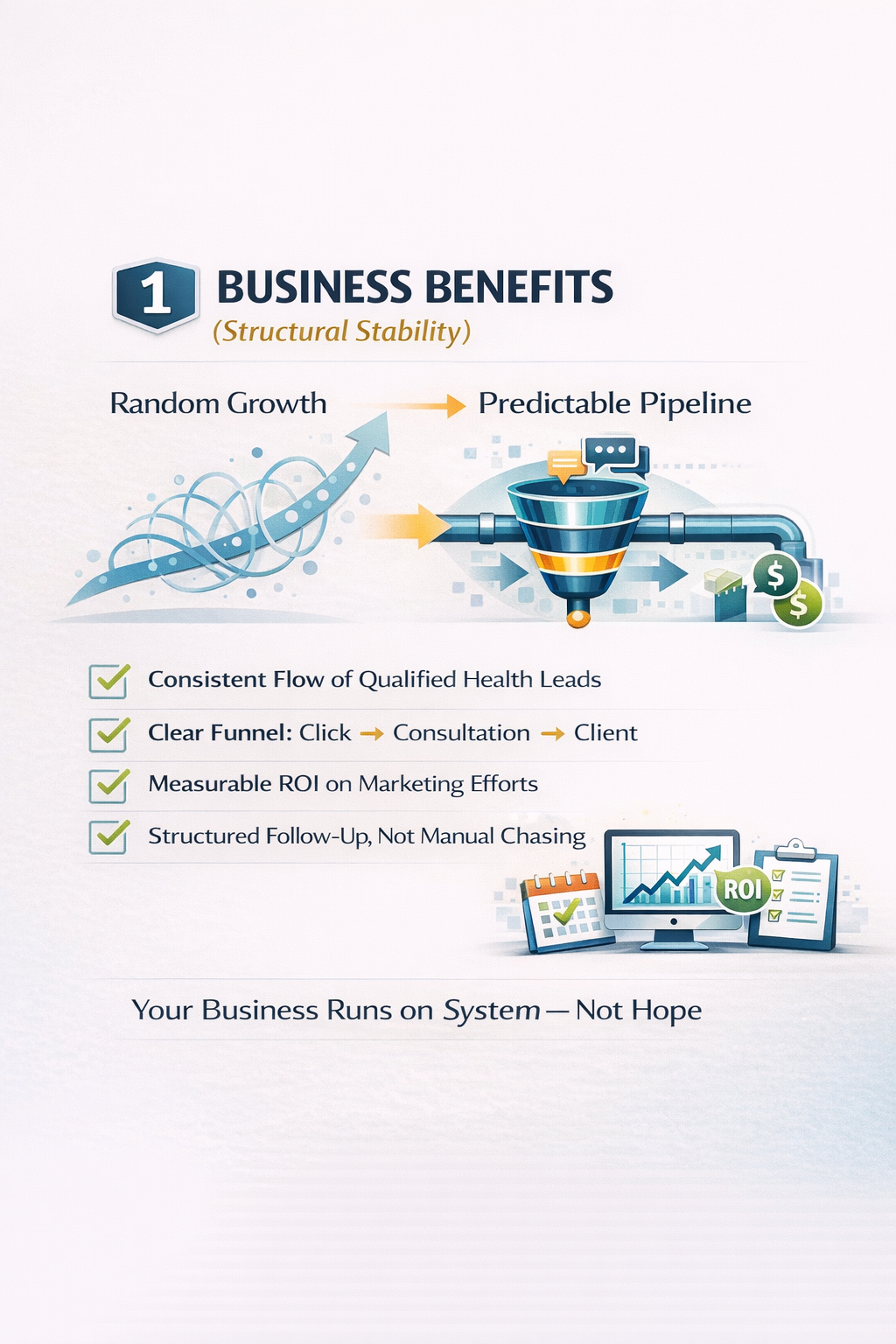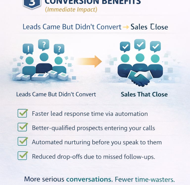 When these benefits stack together, they don’t just improve one area of your business — they transform the entire operating model. You move from unpredictable growth to a structured pipeline, from inconsistent revenue to stable income, from scattered follow-ups to automated conversions, and from stress-driven decisions to strategic scale. Each layer reinforces the next, creating a compounding effect where clarity drives confidence, systems drive sales, and positioning drives premium perception. Instead of isolated wins, you build an integrated growth engine that makes your business stronger, smarter, and more scalable over time.
